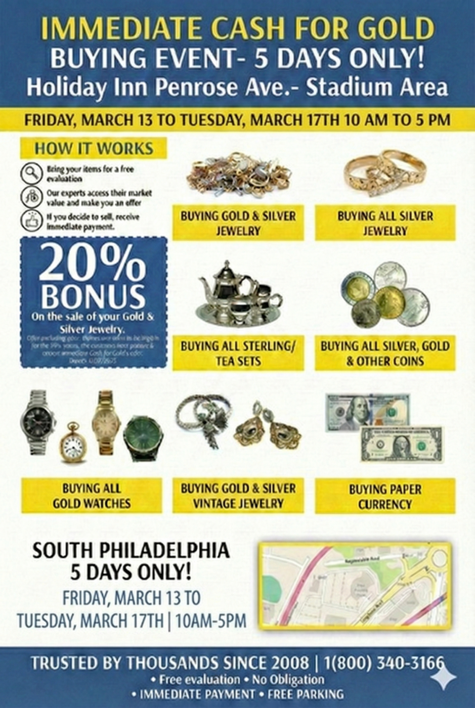 This Friday, March 13th through Tuesday March 17th at the Holiday Inn on Penrose Ave in South Philadelphia